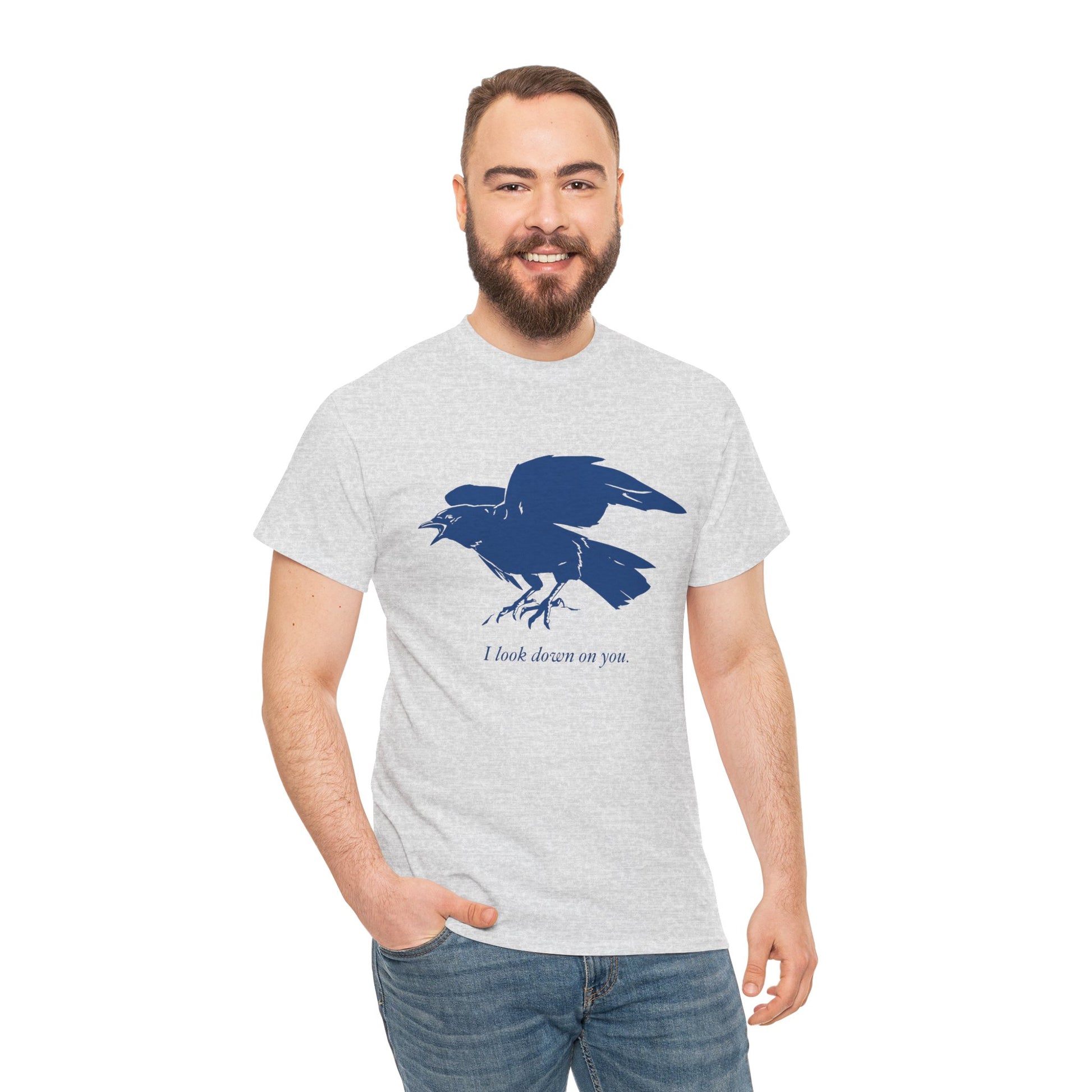 You probably don't have enough condescension in your wardrobe. We're here to help. Look down on your peers along with this shouting corvid!